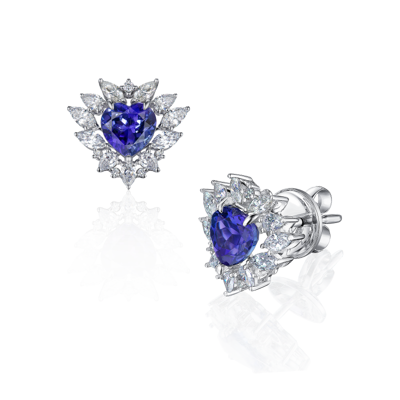 Tanzanites cut the heart. Pear-cut, marquise and round-cut diamonds.