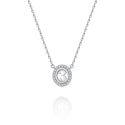 Elegant pendant on a chain with three levels of length in white gold. The gold number in the center of the pendant is securely hidden by sapphire crystal and framed by a shining diamond scattering. The role of the figure here is conditional and ambiguous. It can be a password, a signal, or a symbol, the essence and meaning of which are known only to you.