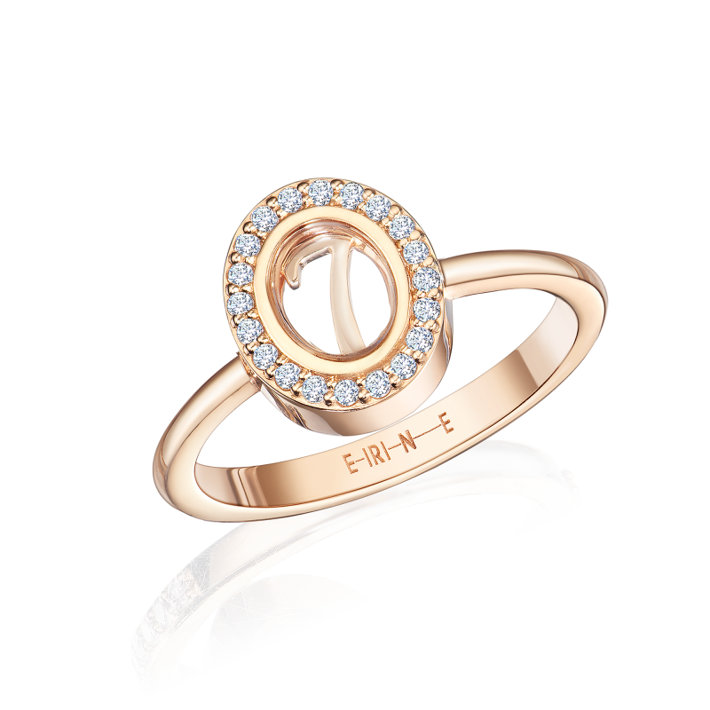A conceptual ring made of rose gold and sapphire crystal with a gold number in the center. A number surrounded by a scattering of diamonds can be a symbol of your success. Perhaps it is associated with vivid impressions and happy events that are dear to you.