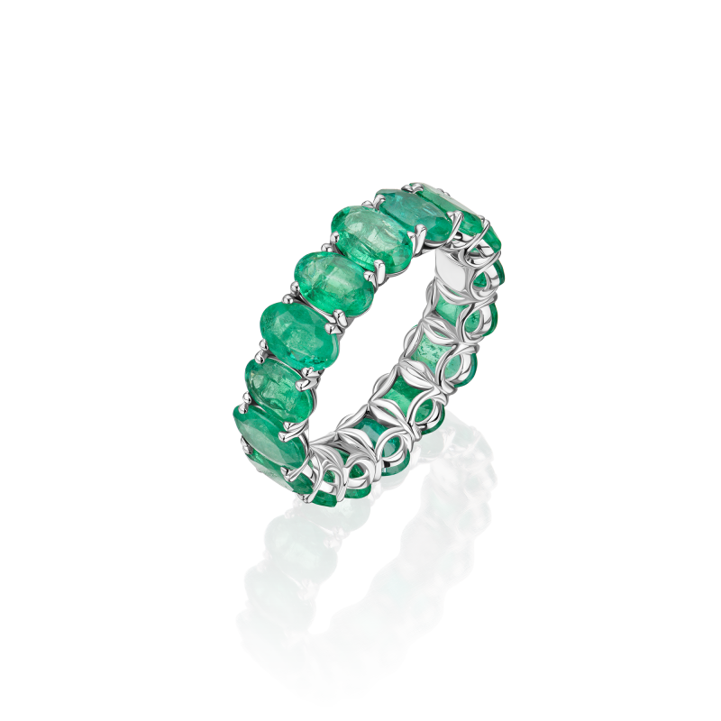 Oval-cut emeralds.