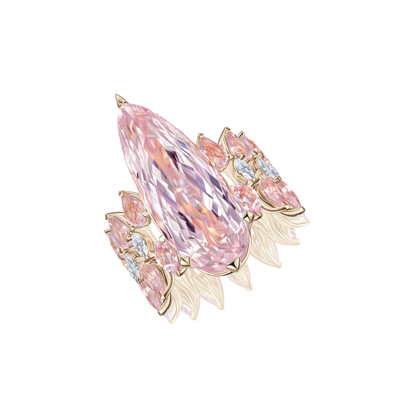 Ring with kunzite, morganites and diamonds
