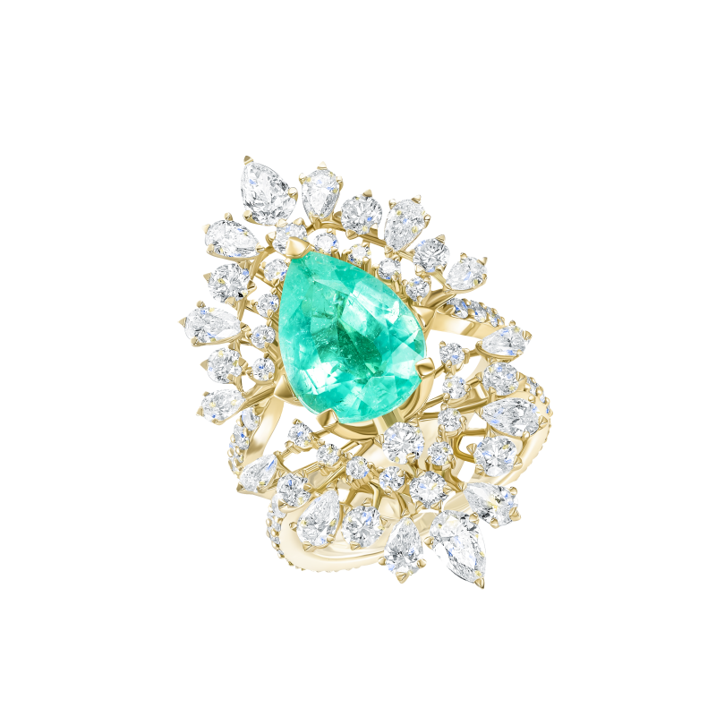 Tourmaline Paraiba cut pear. Pear-cut and round-cut diamonds.