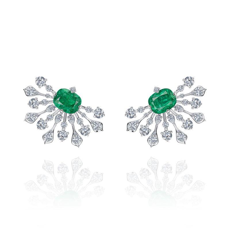 Emeralds of the kushon cut. Pear-cut and round-cut diamonds.