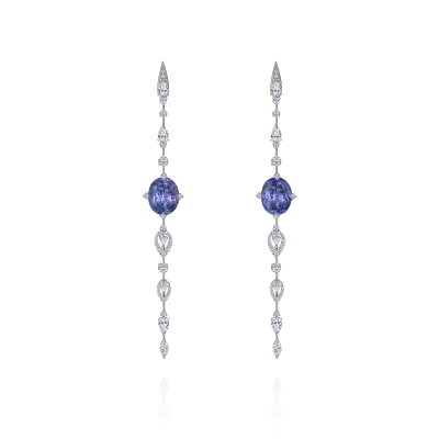 Tanzanites are oval-cut. Pear-cut, marquise and round-cut diamonds.
